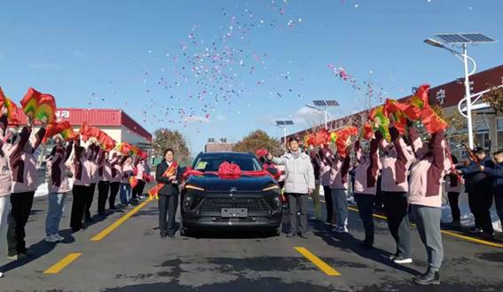 煙臺黃渤海新區八角灣國際會展中心B1展廳,隨著一聲“發車”的號令,上百輛前掛紅花的嶄新汽車排成一隊有序駛出,向著區內不同的企業駛去——這已經是黃渤海新區連續兩年為企業發放汽車獎勵。