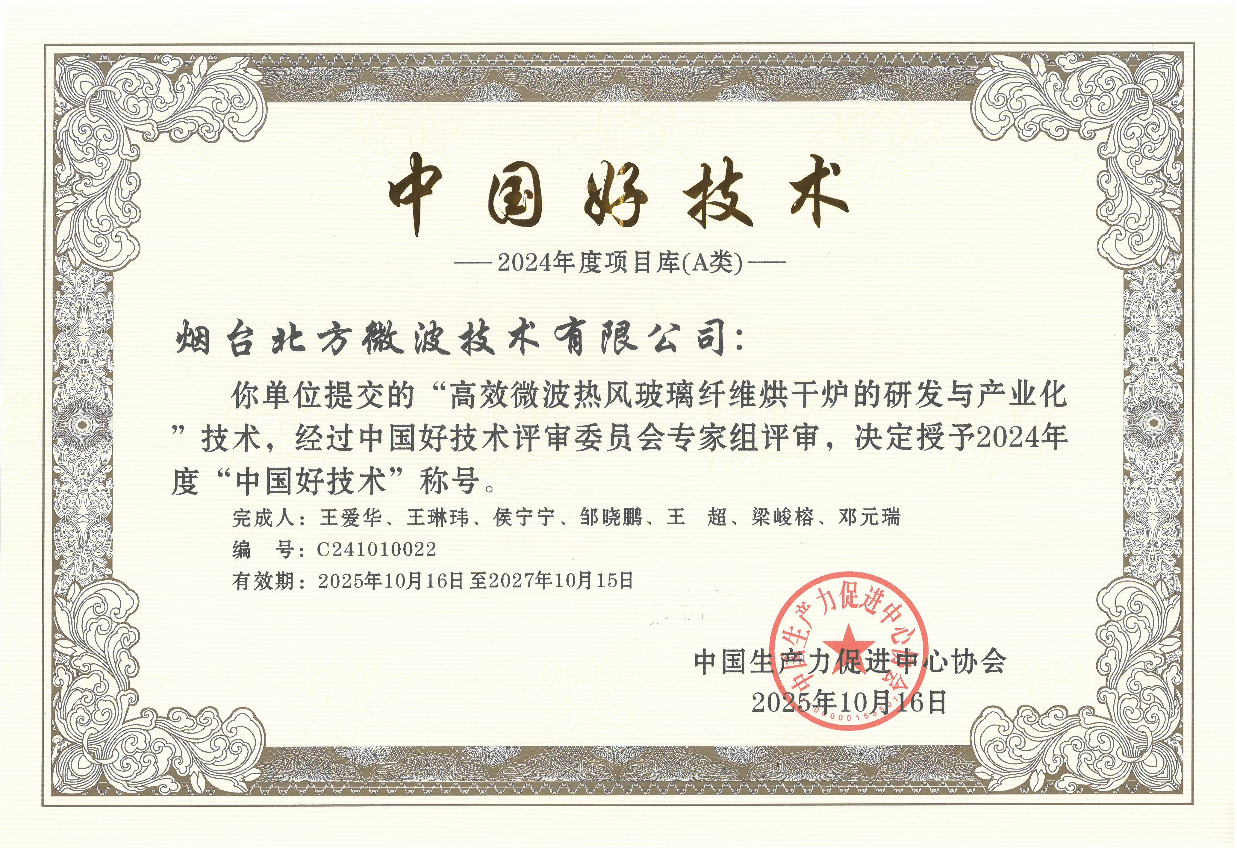 煙臺(tái)北方微波技術(shù)有限公司憑借“高效微波熱風(fēng)玻璃纖維烘干爐的研發(fā)與產(chǎn)業(yè)化”項(xiàng)目,從眾多參評(píng)技術(shù)中脫穎而出,成功入選“中國好技術(shù)”A類項(xiàng)目庫,彰顯了其在工業(yè)微波能應(yīng)用領(lǐng)域的卓越創(chuàng)新實(shí)力。