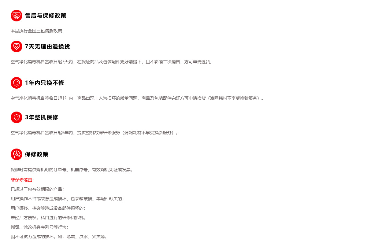 本品包含:空氣凈化消毒機 ×1 電源線 ×1 說明書(含三包憑證、保修條款)×1
